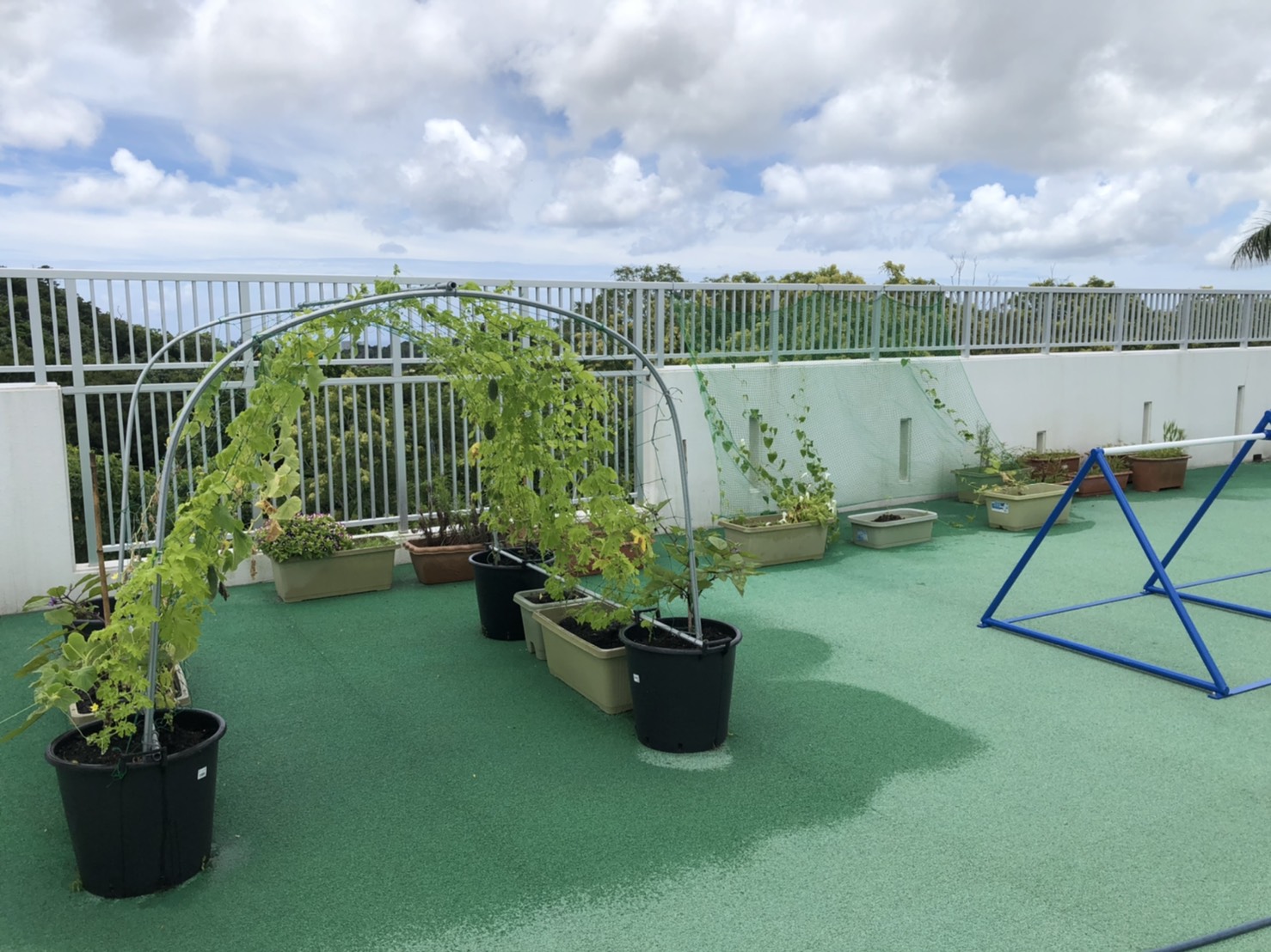 今年度、屋上の環境を少し変え野菜のほかに